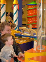 Amber tried the simple circuit maze. She did pretty well for being 3. The giant magnetic Wooly Willy was a huge hit. Eli even found legos to play with.